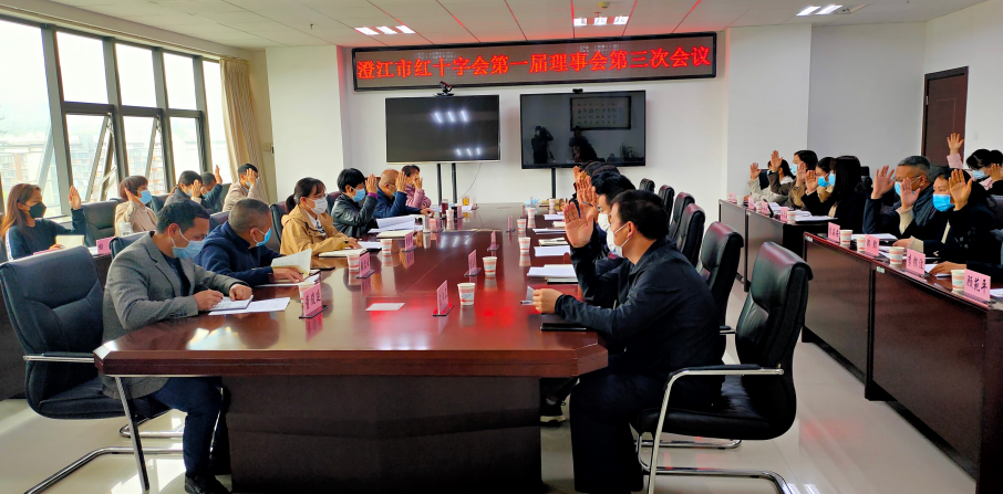 4月19日下午,澄江市红十字会召开第一届理事会第三次会议,会议听取并审议了《澄江市红十字会2021年工作报告》、《澄江市红十字会2021年度财务收支情况报告》。澄江市人民政府副市长、市红十字会会长出席会议并讲话,理事会成员单位29名理事参加会议,监事会5名监事列席会议。