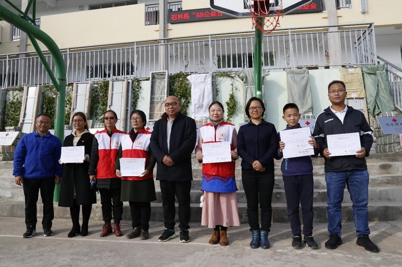 筹款代表黄圣尧同学分享了感人筹款故事。在仪式上,副县长殷瑕就本次授牌仪式作了讲话,激励学生做一个有责任心、乐于奉献的人。石林红会还为在“99公益日”参与志愿服务的志愿者颁发了志愿服务者证书,并为石林11所小学颁授“博爱图书角”牌。
