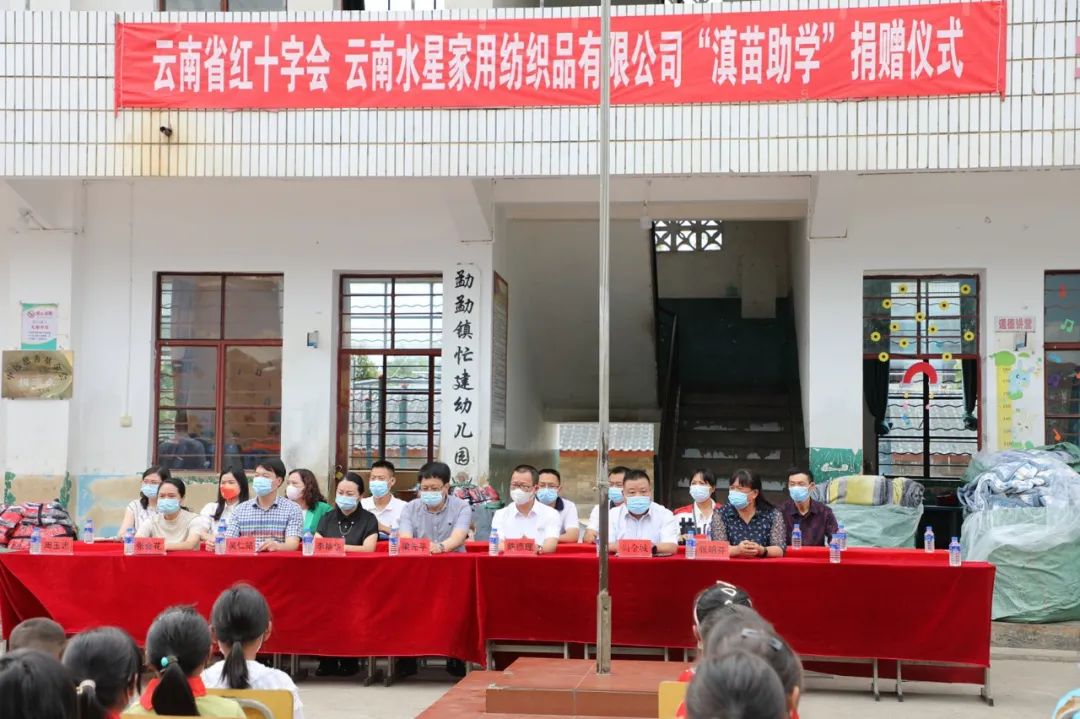 6月13日至14日,云南水星家用纺织品有限公司通过云南省红十字会捐赠一批价值123750元的校服(750套)、毛毯(375条),用于帮助双江自治县勐勐镇忙建完小和忙糯乡富王完小在校学生。
