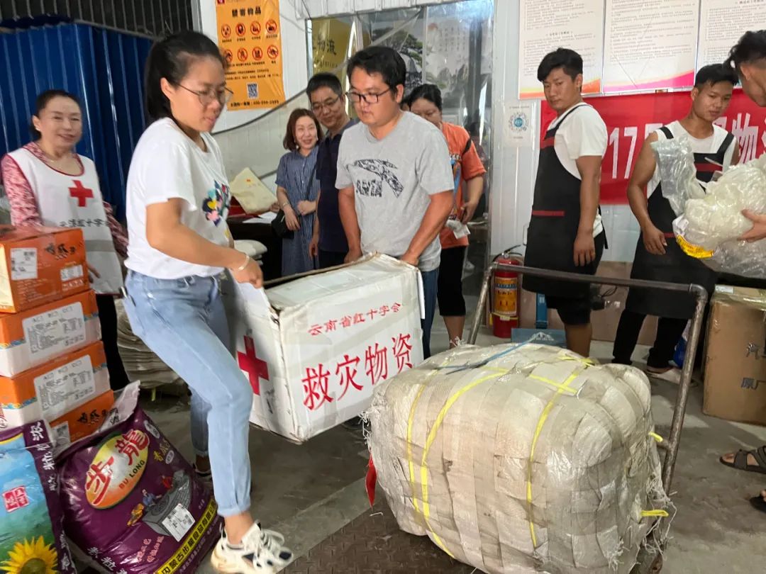 6月22日上午,元江县红十字会在元江云聚物流公司将省红十字会、玉溪市红十字会下拨的疫情防控物资发放到10个乡镇街道,物资包括薄麻毛毯750条、旅行帐篷50顶(总价值42600元)。