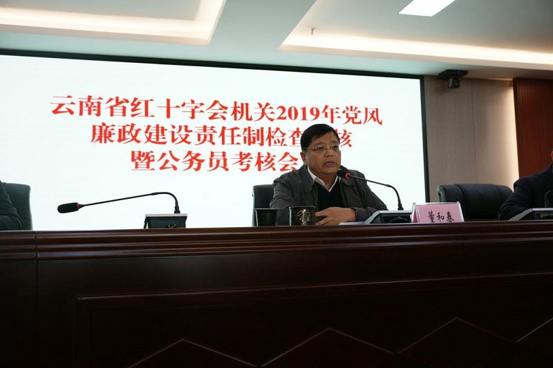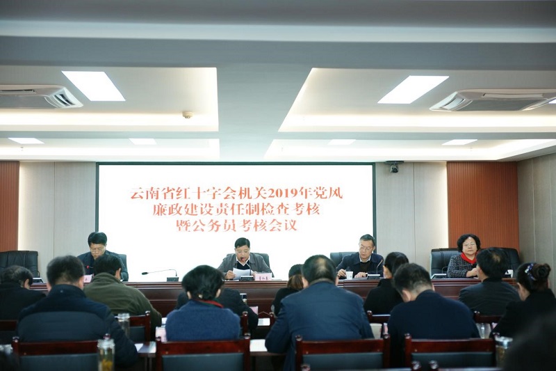 12月18日下午,省红十字会机关召开2019年落实党风廉政建设责任制情况检查考核暨公务员考核会议,深入学习贯彻习近平新时代中国特色社会主义思想,落实全面从严治党要求,推动党风廉政建设责任制落实落地,以述职、述责述廉方式,对机关各部室主要负责人履职情况和落实党风廉政建设责任制情况进行考核。