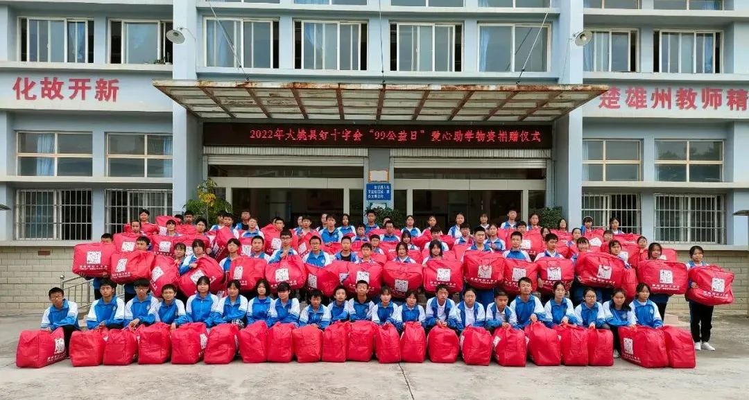 近日,大姚县红十字会举行2021年“99公益日”项目温暖被褥包、爱心书包发放仪式。