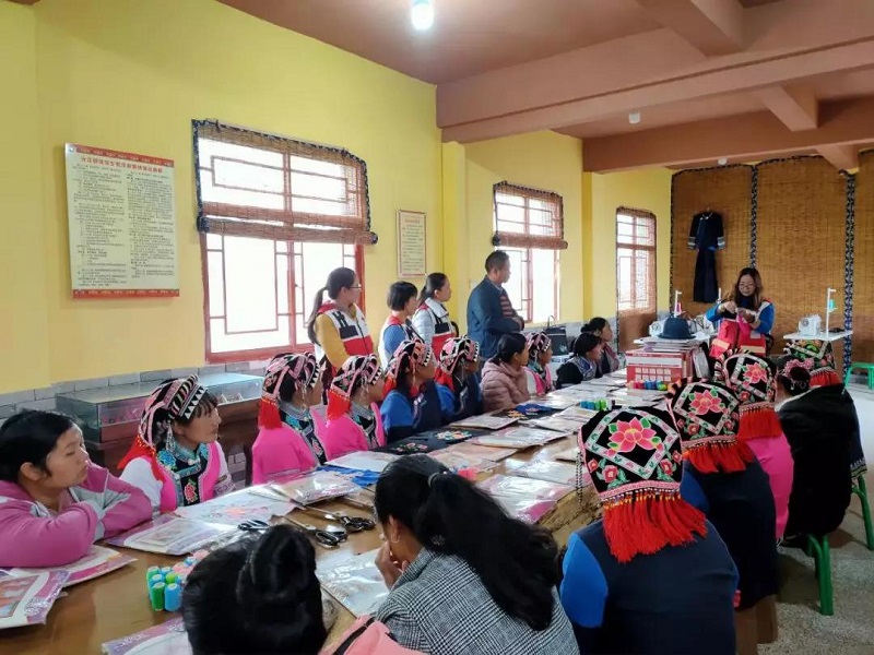 红十字志愿者、满优民族服饰研发中心总经理杨燕为绣娘们授课