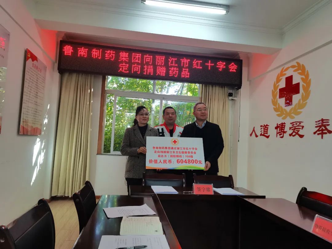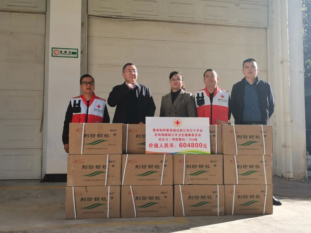 11月11日,鲁南制药集团携手丽江市红十字会向丽江市卫生健康委员会捐赠价值60余万元的启达力荆防颗粒,助力丽江市疫情防控工作。