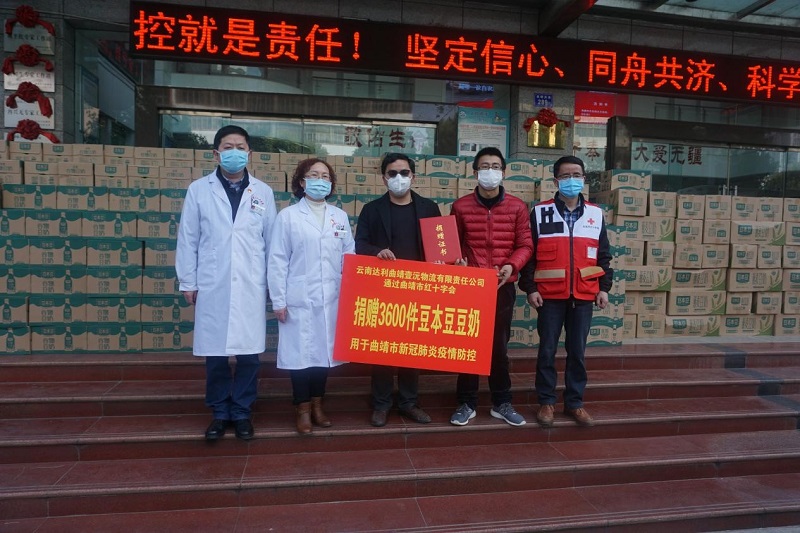 2月23日,云南达利园曲靖壹沅物流有限责任公司向曲靖市红十字会捐赠了3600件,价值206400元豆本豆奶,定向捐赠到了曲靖市第一人民医院、第二人民医院和市中医院。