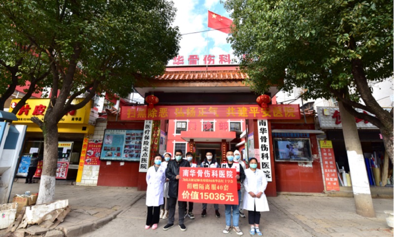 2月25日下午,南华骨伤科医院向南华县红十字会捐赠价值15036元40套医用隔离防护服,定向捐赠给南华县人民医院抗击新冠肺炎疫情防控工作,助力一线战“疫”所需。这是疫情防控工作以来,南华县接收到的第一批医用隔离防护服。