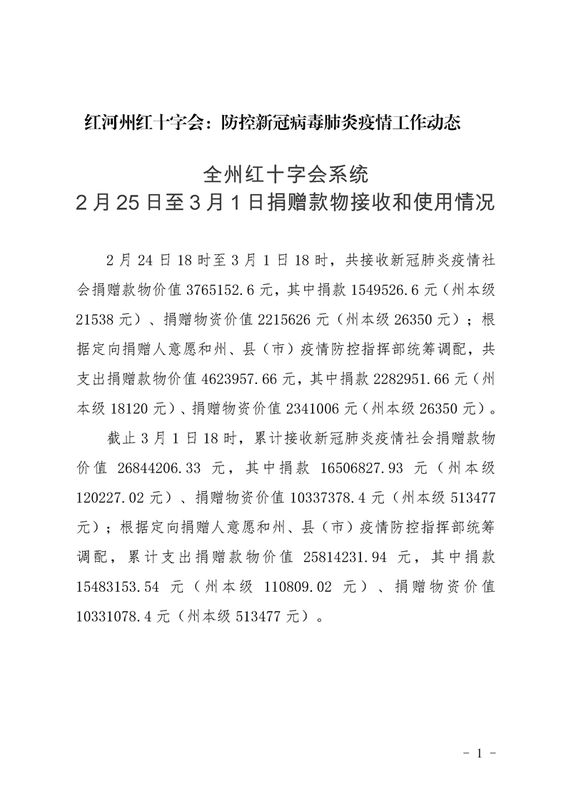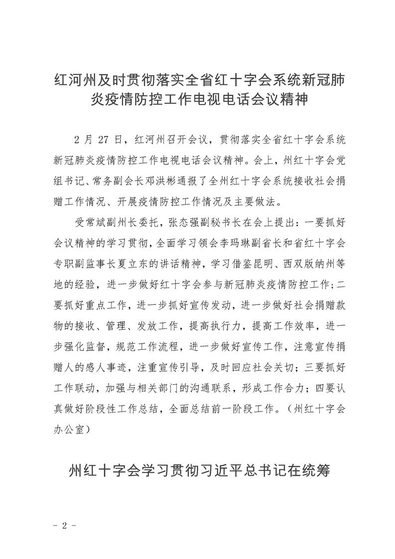 红河州红十字会:防控新冠病毒肺炎疫情工作动态