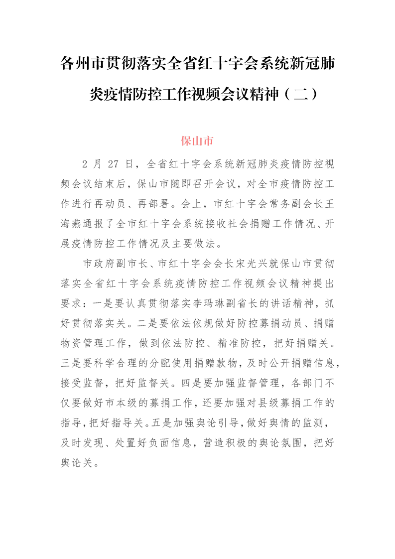 各州市贯彻落实全省红十字会系统新冠肺炎疫情防控工作视频会议精神(二)