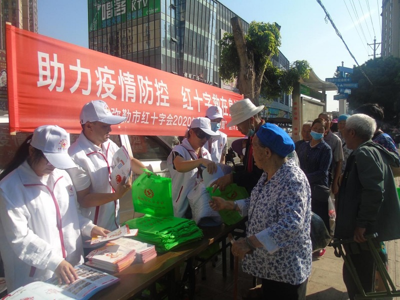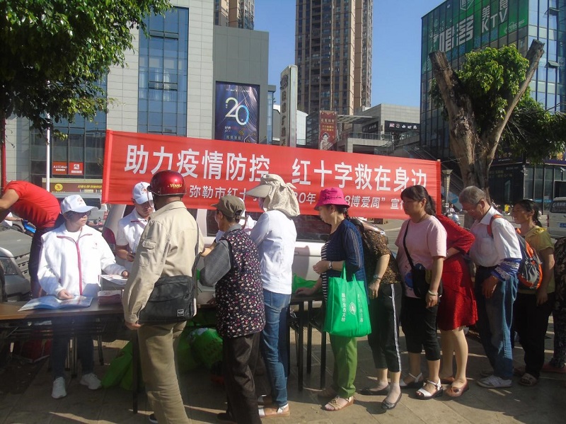 为弘扬“人道、博爱、奉献”的红十字精神,在第73个“世界红十字日”和“5·12”防灾减灾日来临之际,5月11日上午,弥勒市红十字会到弥阳镇仁和商贸城门口开展“助力疫情防控,红十字救在身边”主题宣传活动。