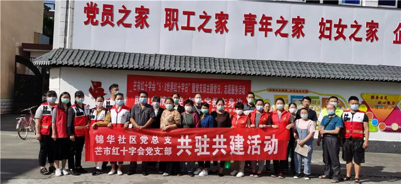 2020年5月8日,芒市红十字会党支部组织在职党员到锦华社区报到,与锦华社区党总支开展共驻共建活动。