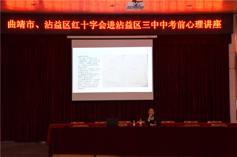 5月13日,沾益区红十字会邀请曲靖市红十字会心理救援中心主任高翠梅老师,为沾益三中今年参加中考的6个初三班级300余名同学开展考前心理辅导,消除他们考前紧张、焦虑等负面情绪,以正确的心态迎接中考。