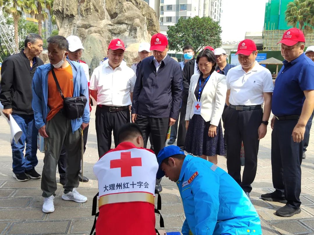 大理州人民政府副州长、州红十字会会长杨泽亮等领导到现场指导,红十字应急救护培训师资向路过的群众和相关单位的工作人员进行心肺复苏、创伤包扎等救护技能的讲解和操作演练。有一现场观看的大姐说:“遇到紧急救治,不是打了‘120’等着,救命的黄金时间要把握好,这个技术太重要了”。