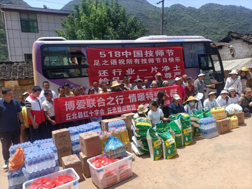 为大力弘扬“人道、博爱、奉献”的红十字精神,发挥好党和政府在人道领域的助手和联系群众的桥梁纽带作用,进一步改善麻风病患者及后代的生活条件,推动助困助医工作,丘北县红十字会积极与足之语足浴馆沟通争取资金支持,于5月18日联合县皮肤病防治站、足之语足浴馆工作人员到马六塘村开展关爱活动。活动为全村31户送去价值1.3万元的大米、矿泉水、洗涤剂、食用油、药品慰问品共31份,县皮肤病防治站为14名治愈麻风康复者送去价值3360元的猪肉、鸡蛋14份。活动累计发放药品、慰问品1.636万元,受益群众147人(次)。