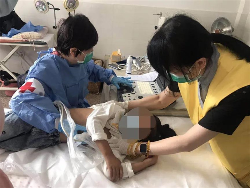 6月6日,上海交大胸科医院专家团队14人一行在大理州红十字会副会长唐苍仁、救灾备灾科长李明的陪同下,到宾川县妇幼保健院计生院区为宾川0一18岁先心病疑似患儿开展免费筛查。