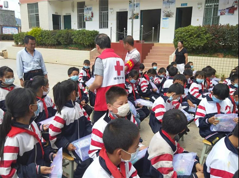 6月5日,禄丰县红十字会常务副会长杨春侠带着云南省红十字会备灾救灾中心志愿服务队的爱心到中村乡鲁支完小开展微公益“小小心愿”活动。禄丰县红十字会与鲁支完小67名同学进行了爱心互动交流,为全体同学送上了六一儿童节的礼物(价值2000元的文件盒及16色大型彩笔),并开展了红十字知识、生命健康安全知识的宣传,在送知识、送书籍、送快乐的同时,也把“人道、博爱、奉献”的红十字精神传递到每一名受益的学生,使同学们在节日来临之际快乐和知识双丰收。