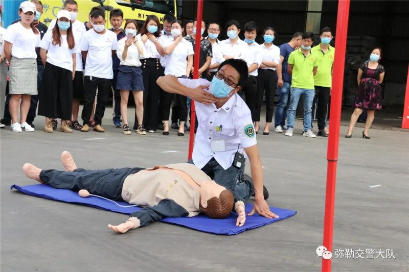 为提高道路交通从业人员安全意识和应对道路交通突发事件,营造良好的道路交通安全环境。日前,弥勒市红十字会参与红河奔腾物流集团有限公司“安全生产月”应急演练活动。此次应急演练活动以“消除事故隐患,筑牢安全防线”为主题,从实战出发,演练结合,我会为演练医疗救护组小组成员。市红会通过救护人员对现场应急救援的教学及演练,提高从业人员对道路运输安全事故的应变能力和急救技能,筑牢安全意识,提高自救意识,从而有效预防重特大安全生产事故发生,确保我市道路运输行业安全生产形势持续稳定发展。