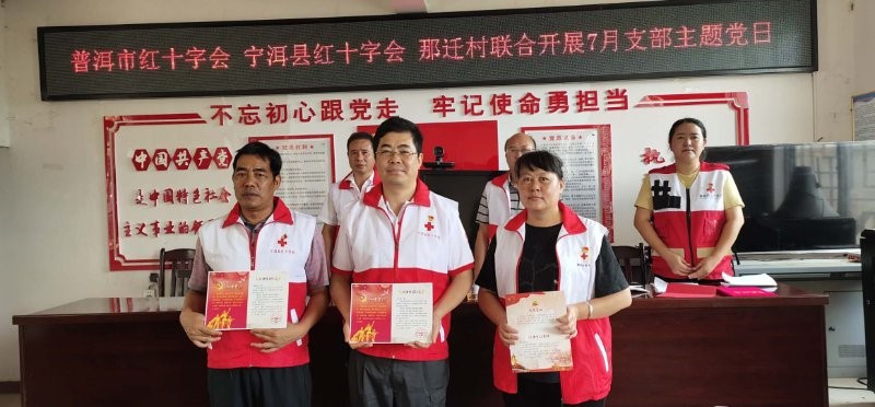 在中国共产党成立99周年之际,为引导党员干部缅怀党的丰功伟绩,回顾初心和使命。近日,普洱市红十字会和宁洱县红十字会联合开展主题党日活动。