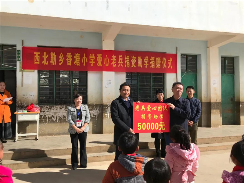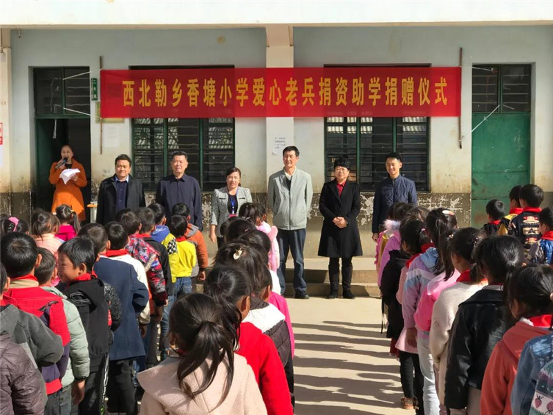 10月22日上午,老兵爱心团队捐资助学捐赠仪式在蒙自市西北勒乡香塘小学举行。红河州红十字会副会长普红芬、蒙自市红十字会常务副会长李宝莉、老兵爱心团队代表方彧华同志和黄显文同志、西北勒乡副乡长李庆韬、香塘小学校长吴先龙及100余名师生参加了捐赠仪式。