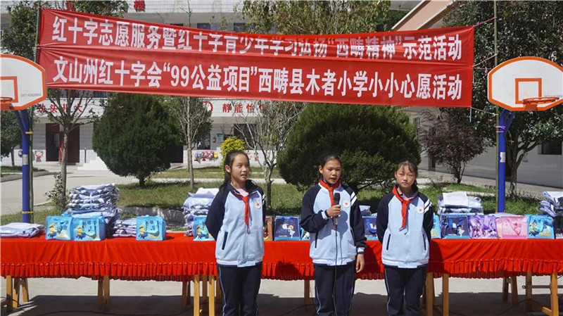 为贯彻落实好文山州学习弘扬新时代“西畴精神”的有关要求,10月23日,文山州红十字会和西畴县红十字会在西畴县蚌谷乡木者小学组织开展了红十字志愿服务暨红十字青少年学习弘扬“西畴精神”示范活动。