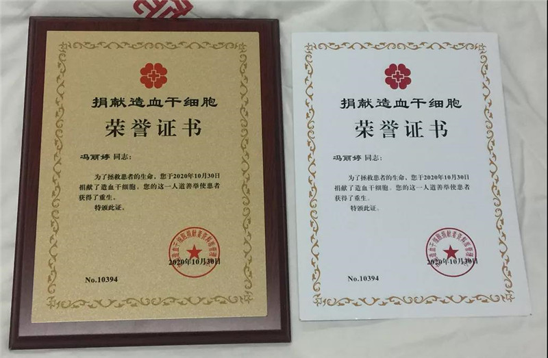 2015年,正在读大学的冯丽婷登记成为了一名造血干细胞志愿捐献者。