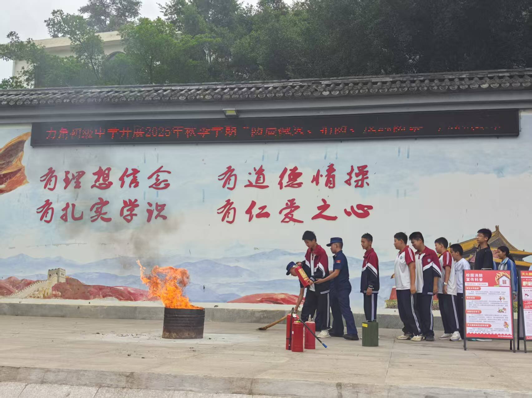 为进一步提升广大师生面对突发事件时的应急处置能力,9月11日,力角初级中学联合县消防大队、力角派出所组织开展2025年秋季学期“防震减灾、消防安全、反恐防暴”三合一综合应急演练,旨在通过模拟真实情景,检验并优化学校应急预案,筑牢校园安全“防火墙”,实现“教育一个学生,影响一个家庭,带动整个社会”的目的。