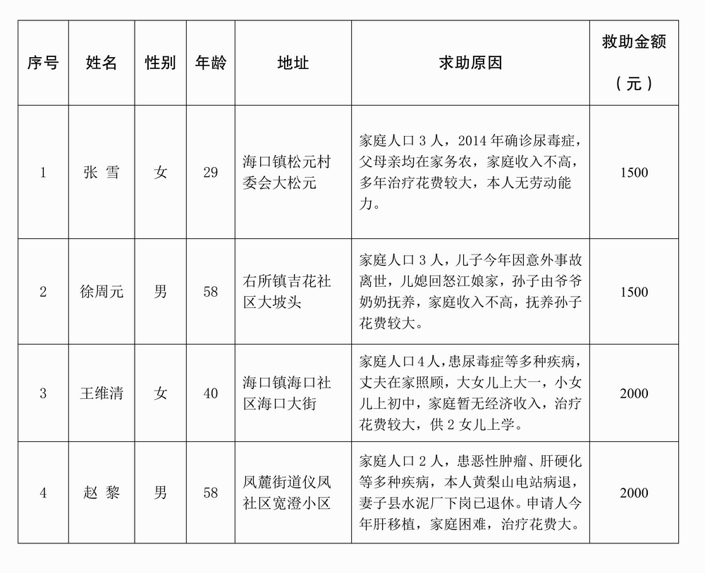 澄江市红十字会2025年第十一期人道救助项目拟救助对象公示