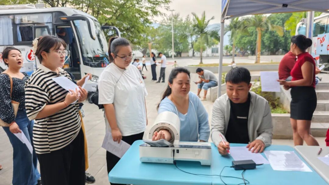清晨8点,献血车前已排起长队。工作人员有序引导登记,医护人员细致开展血压测量、血液筛查等准备工作。参与献血的既有村民、退役军人,也有教师、警察、医护工作者等不同职业的爱心人士。