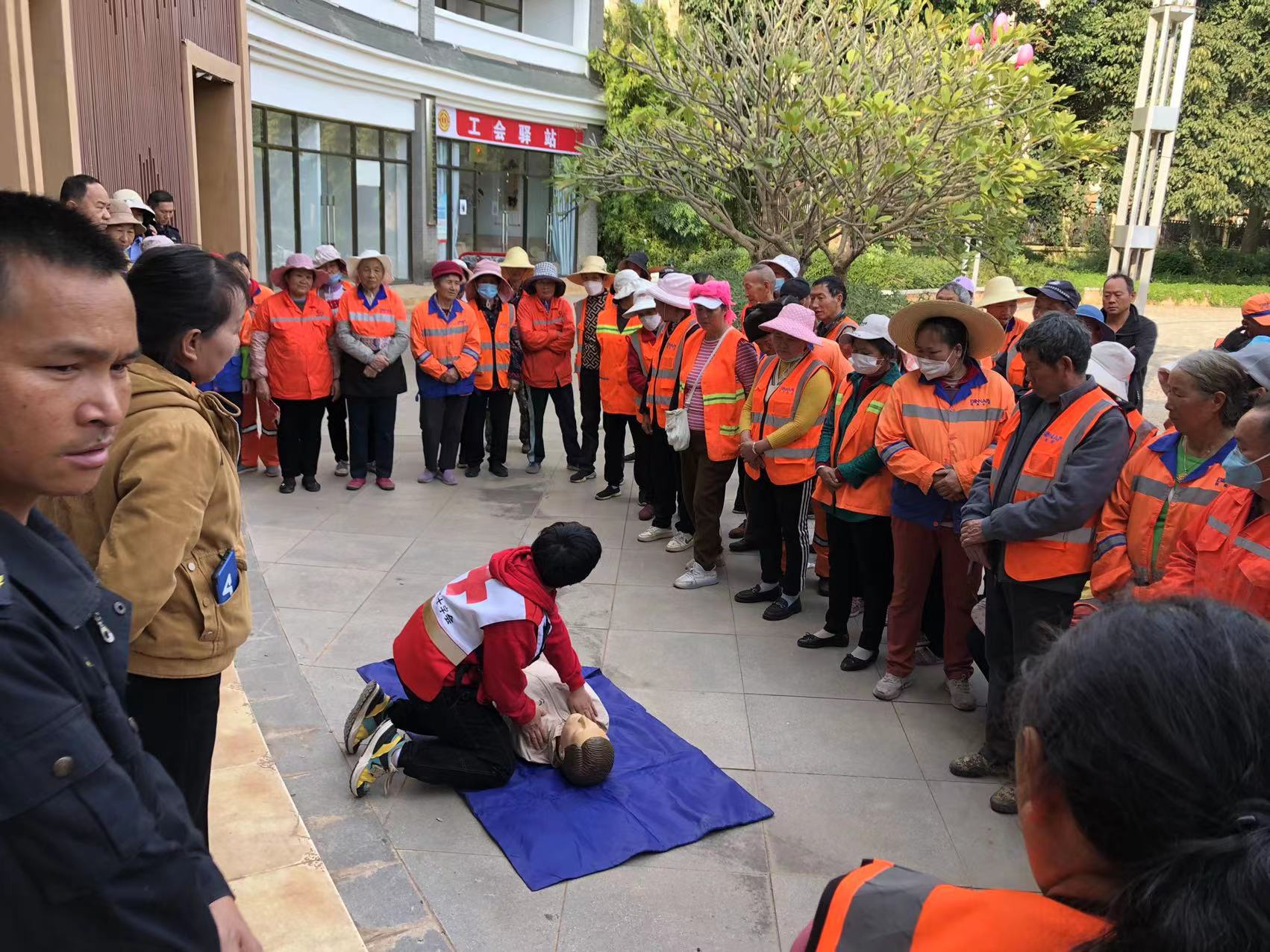 1月29日,元谋县红十字会开展2024年“博爱送万家”活动,为全县的216名环卫工人发放价值2160元的物资。活动现场,为60余名在附近打扫的环卫工人现场开展应急救护培训活动,县红十字会培训老师示范讲解异物卡喉、心肺复苏、中暑、外伤包扎等急救技能。