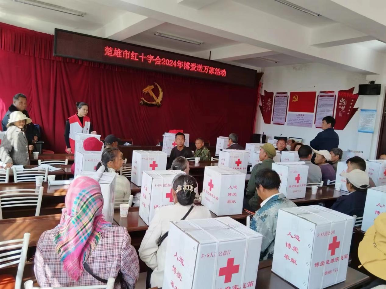 在新年到来之际,楚雄市红十字会为大力弘扬“人道、博爱、奉献”的红十字精神和“奉献、友爱、互助、进步”的志愿精神,于1月30日到楚雄市本东村委会开展2024年“博爱送万家”活动,对36户困难家庭进行走访和慰问。