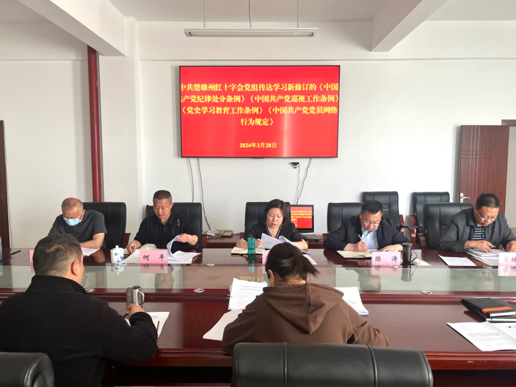 为推进“法治红会”建设,3月28日,中共楚雄州红十字会党组召开会议,传达和学习了部分党内法规制度和国家法律法规,并就如何在系统内贯彻落实进行了专题研究部署。