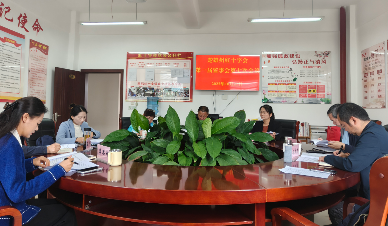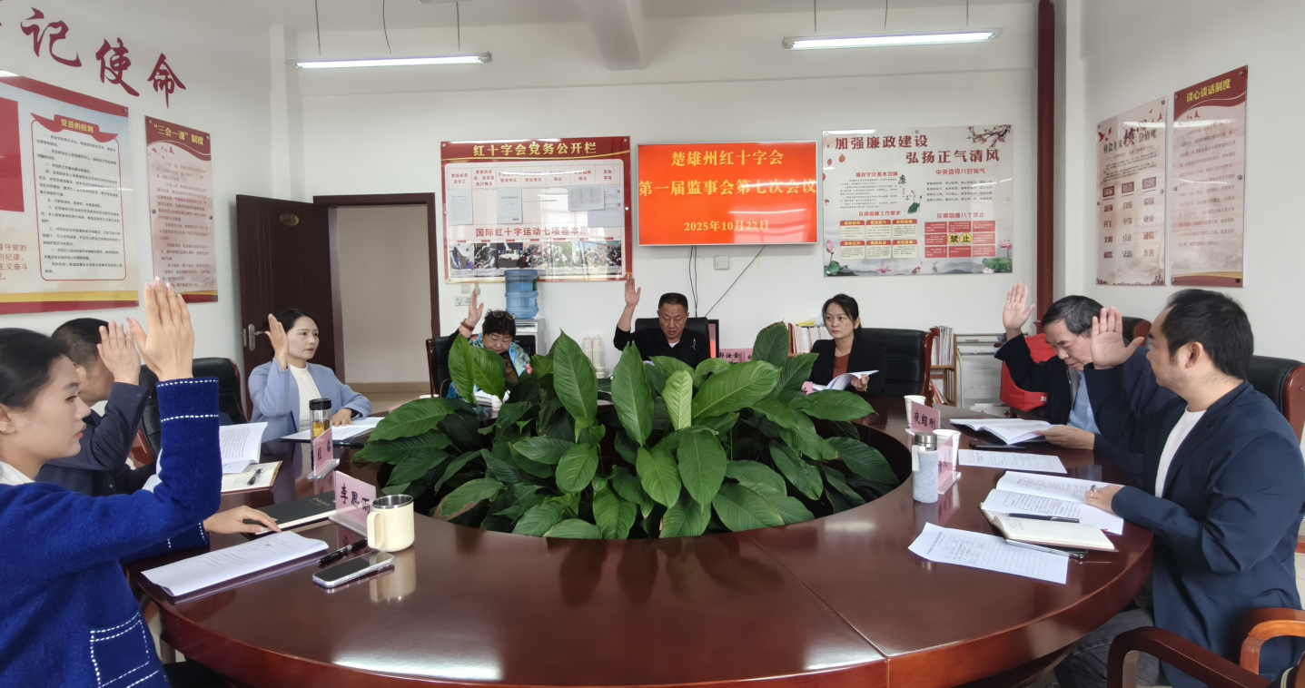10月22日,楚雄州红十字会第一届监事会第七次会议召开。会议通报了楚雄州红十字会第五次会员代表大会筹备进展情况,并表决通过了《楚雄州红十字会第一届监事会工作报告(草案)》《楚雄州红十字会第二届监事会组成方案(草案)》以及《楚雄州红十字会第一届监事会第七次会议决议(草案)》。