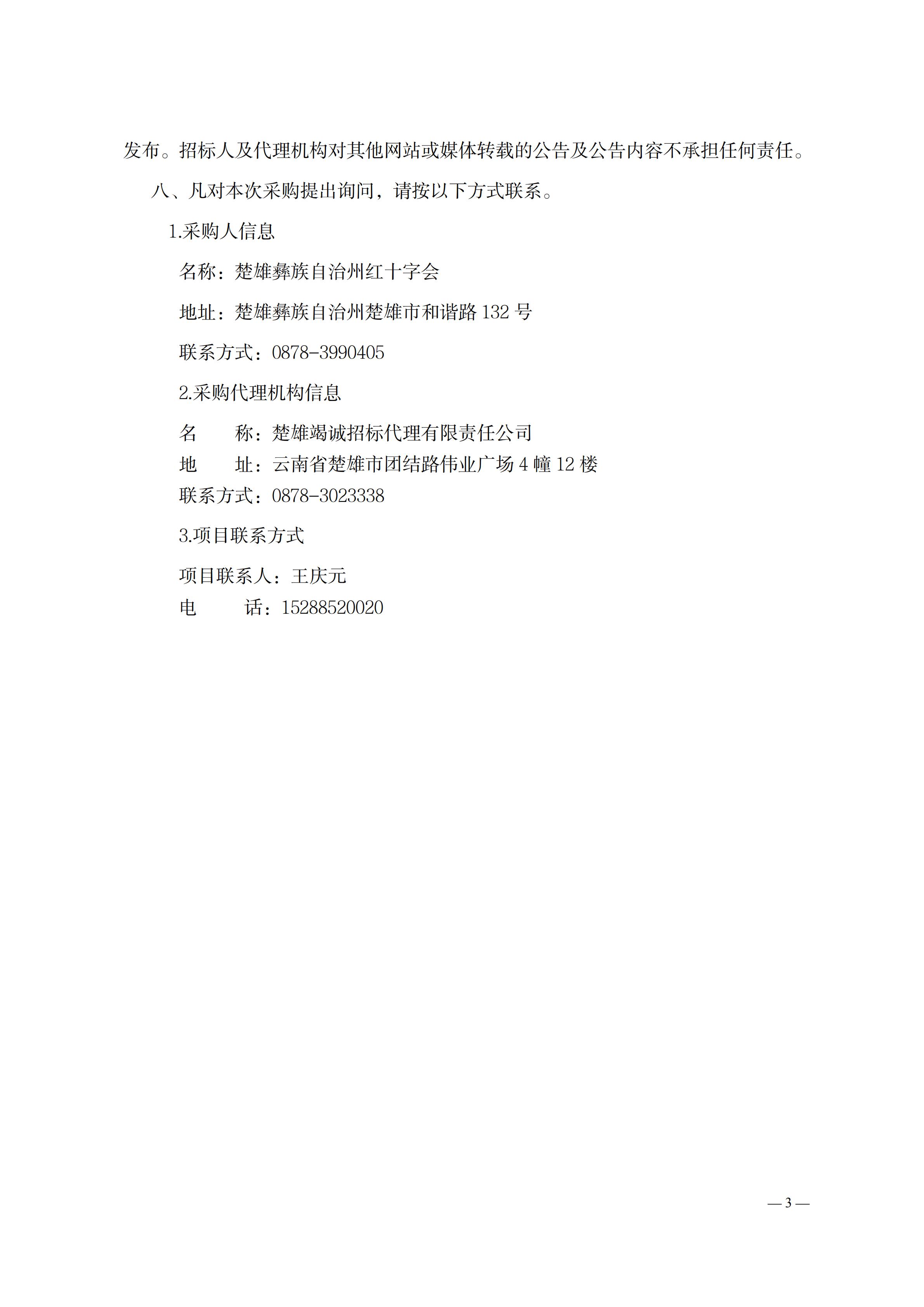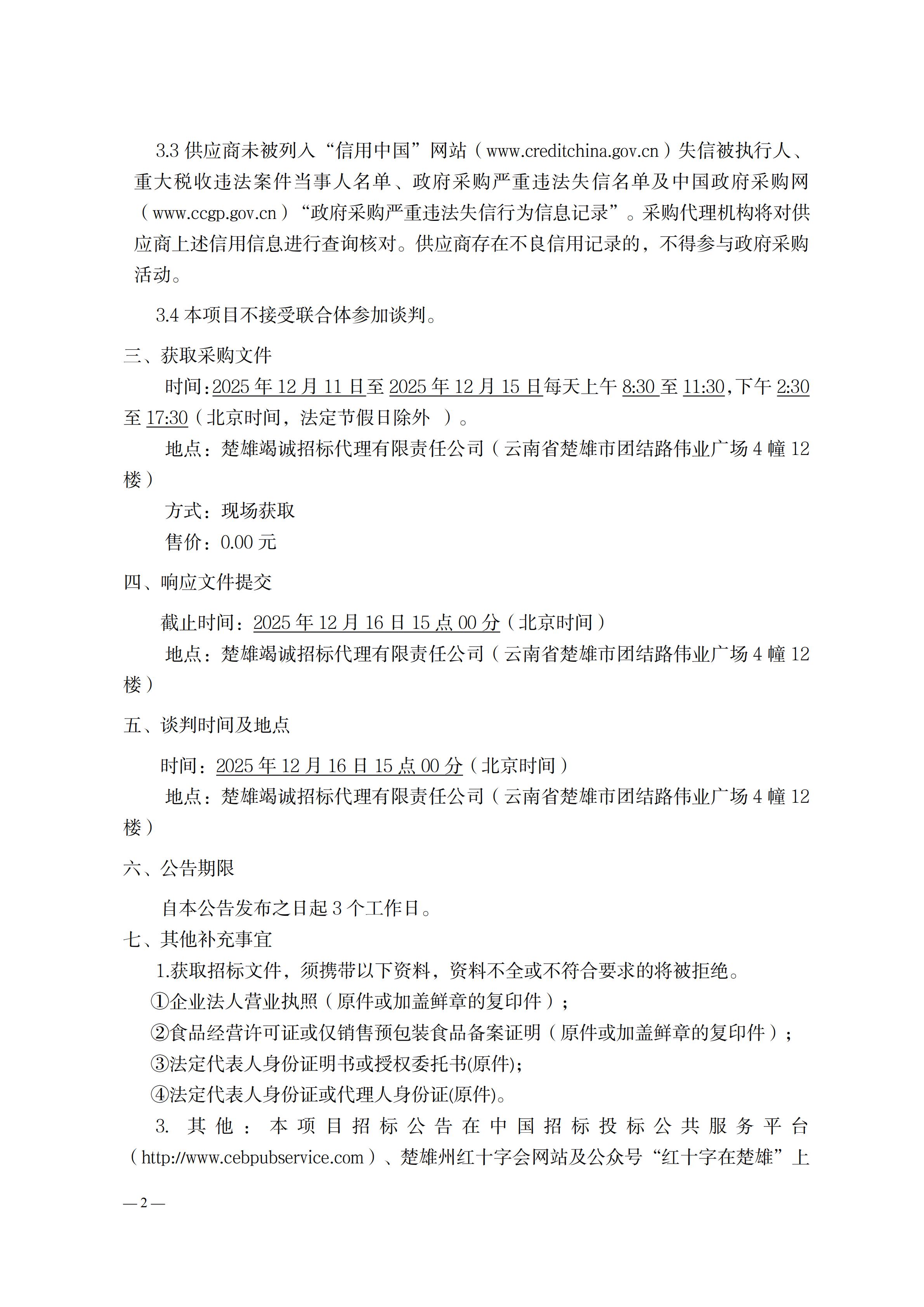 楚雄州红十字会2025 年“久久公益节·博爱楚雄”项目物资采购竞争性谈判公告