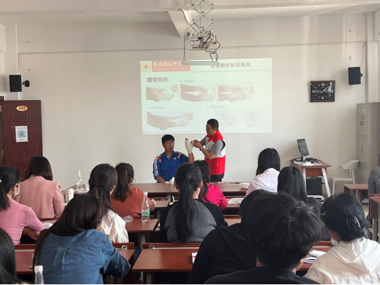培训采用理论知识讲座、实践操作相结合的方式,就红十字运动知识、心肺复苏、自动体外除颤器(AED)使用、创伤救护等急救知识和技能进行了讲解和示范。