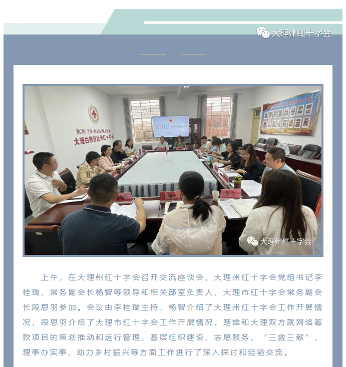 交流经验谋思路 互学互鉴促提升--楚雄州红十字会到大理州开展学习交流