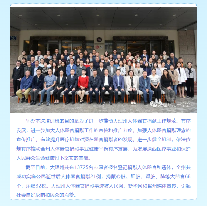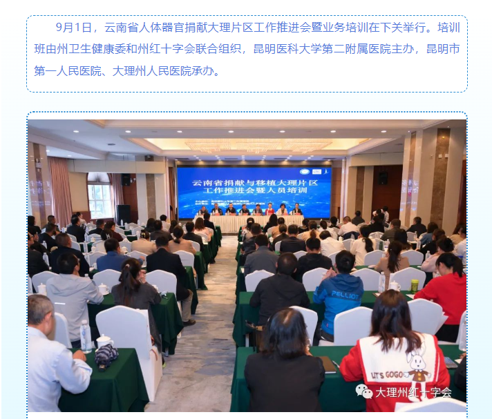 云南省人体器官捐献大理片区工作推进会暨业务培训在关举行