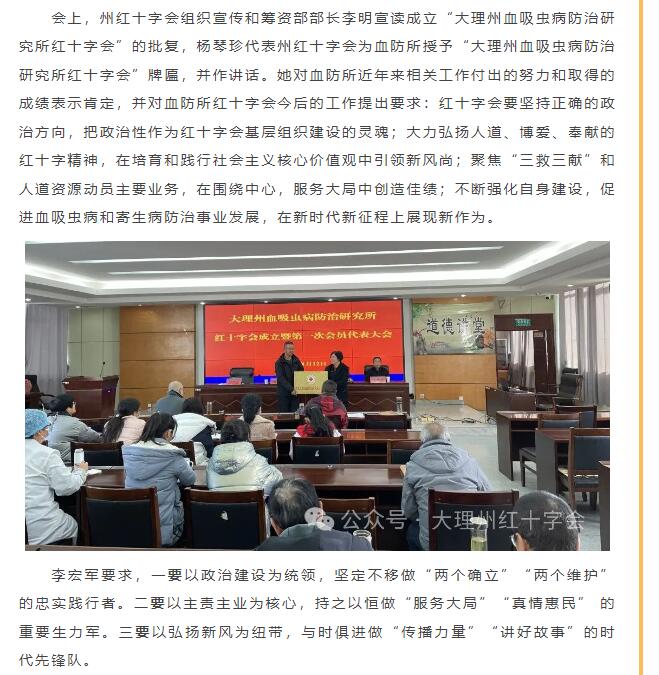 大理州血吸虫病防治研究所红十字会成立暨第一次会员代表大会召开