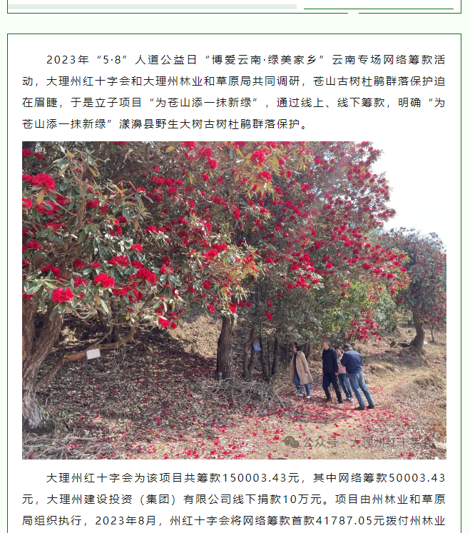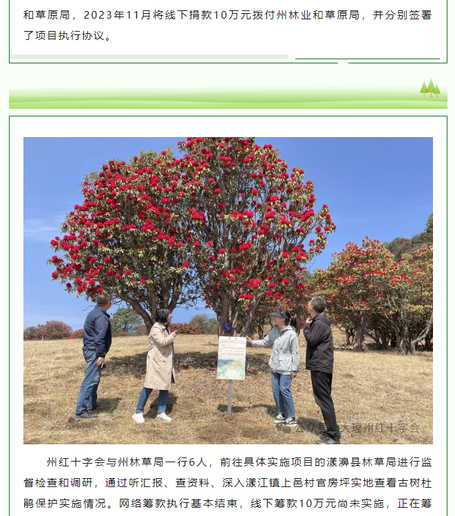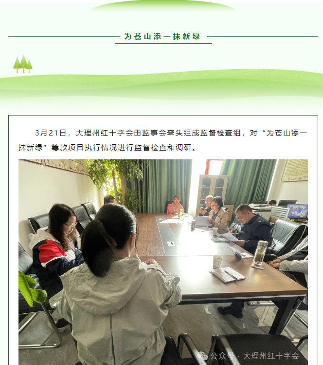 大理州红十字会监事会对“为苍山添一抹新绿”筹款项目进行监督检查