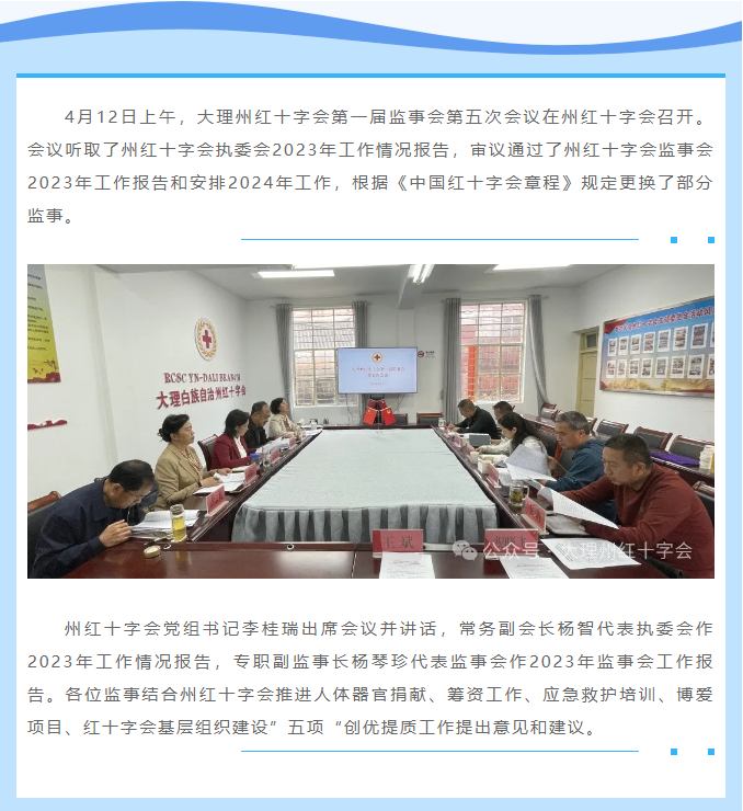 大理州红十字会第一届监事会第五次会议召开
