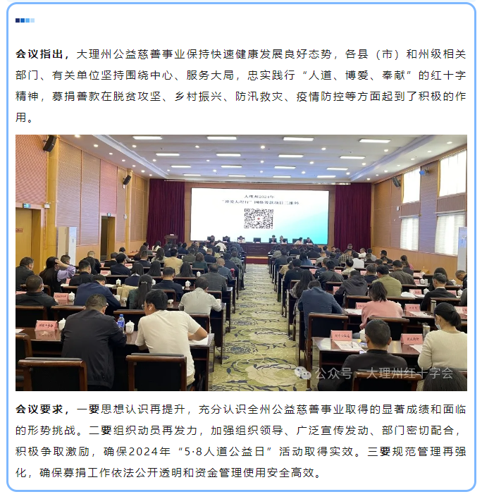 大理州召开2024年“5·8人道公益日”网络筹款动员会