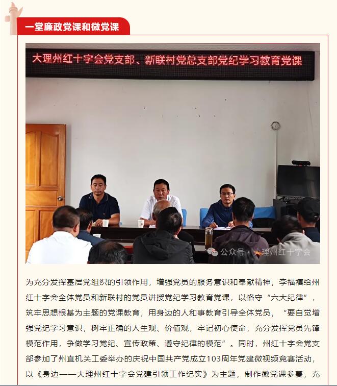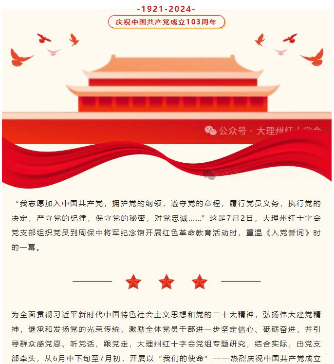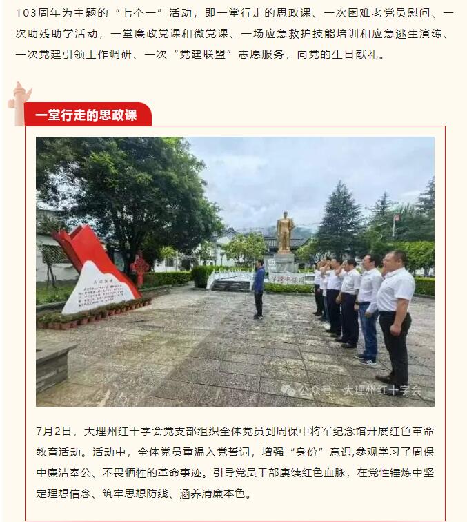 大理州红十字会开展“七个一”庆祝中国共产党建党103周年