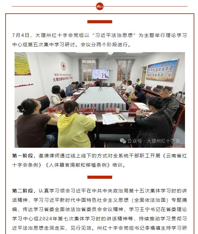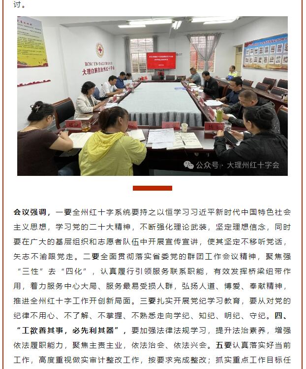 大理州红十字会召开党组理论学习中心组第五次集中学习研讨会
