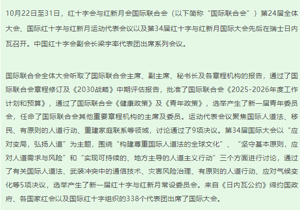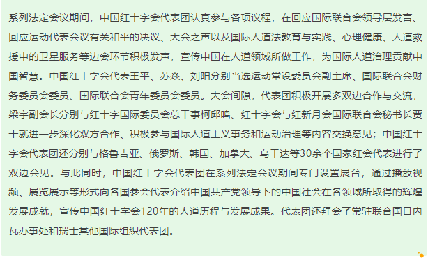 中国红十字会代表团出席国际红十字与红新月运动系列法定会议