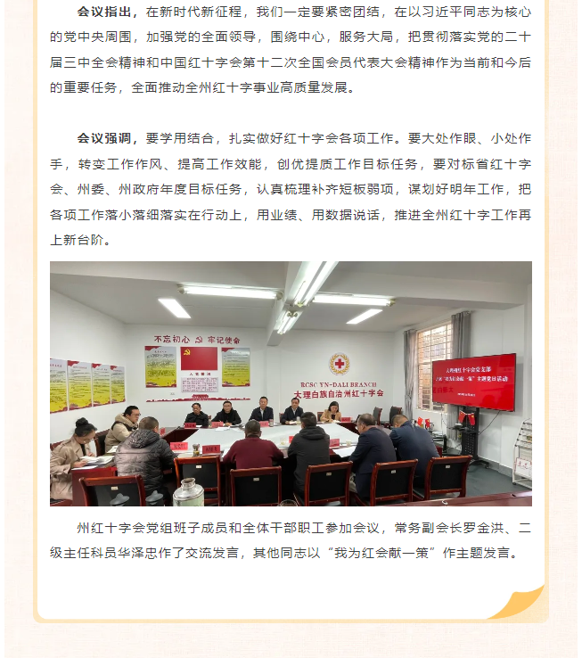 大理州红十字会党组理论学习中心组开展第九次集体学习