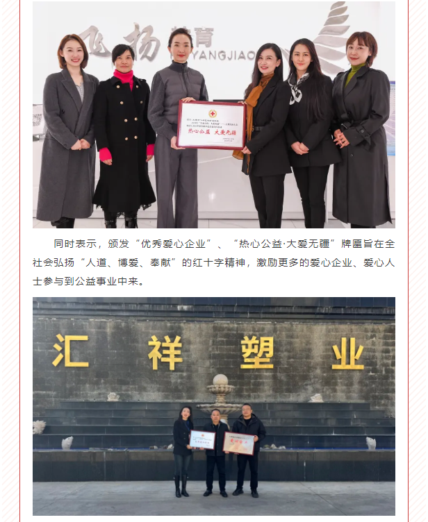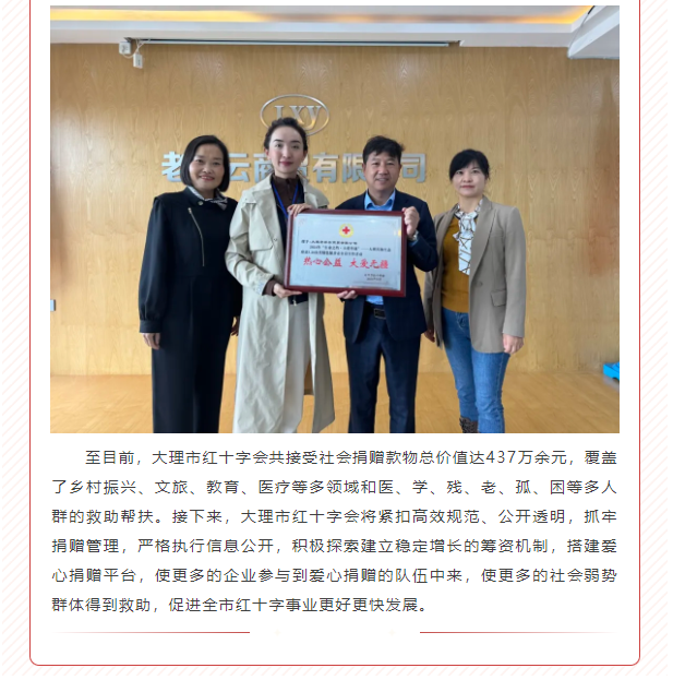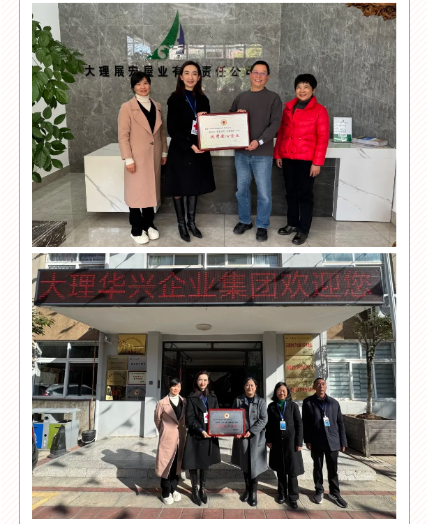 大理市红十字会为爱心捐赠企业颁发纪念牌匾