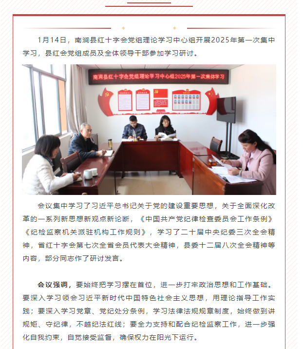 南涧县红十字会党组理论学习中心组开展2025年第一次集中学习