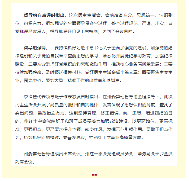大理州红十字会召开2024年度县级以上党和国家机关党员领导干部民主生活会