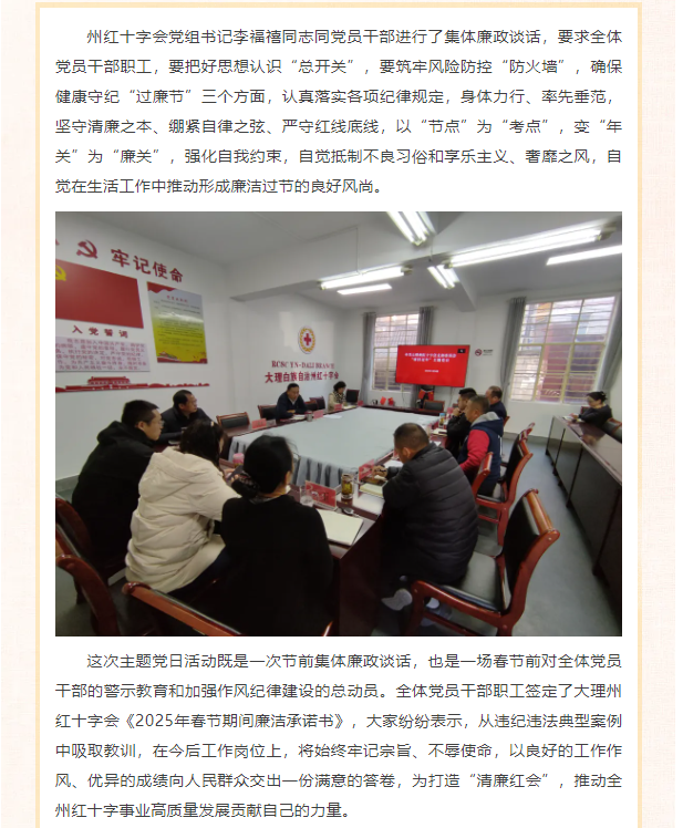 大理州红十字会开展“弘扬清风正气,守牢清廉之本”主题党日活动