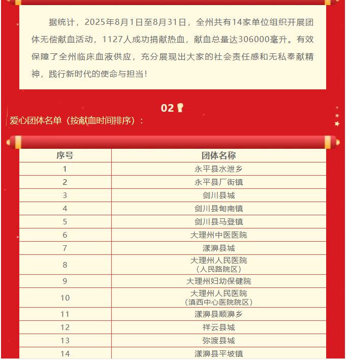 爱在大理 热血同行 | 无偿献血爱心团体光荣榜