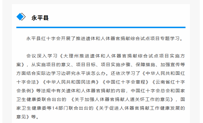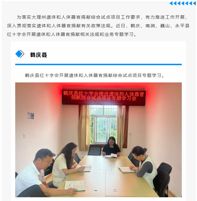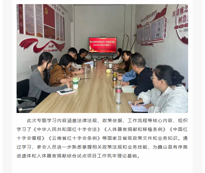 鹤庆南涧巍山永平开展遗体和人体器官捐献综合试点项目专题学习