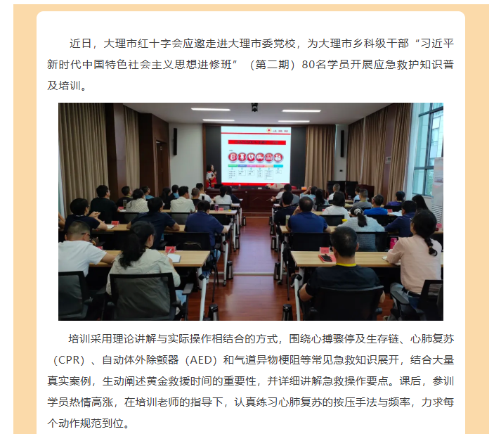 大理市红十字会应急救护知识培训列入市委党校教学课程